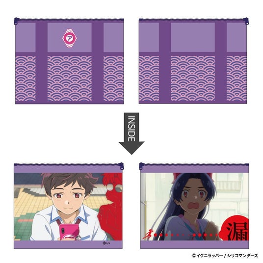 劇中で「矢逆 一稀」が使用しているショルダーバッグをモチーフにデザインしたフラットポーチ。ジップを開けると「矢逆 一稀」の劇中の印象的なシーンを覗くことができます。