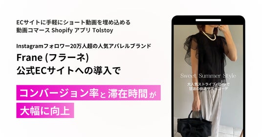 アナグラム株式会社(所在地:東京都渋谷区、代表取締役社長:阿部 圭司)が日本における導入サポートを行う動画コマースツール「Tolstoy(トルストイ)」が、レディースアパレルブランド「Frene(フラーネ)」の公式通販サイトに導入されました。
