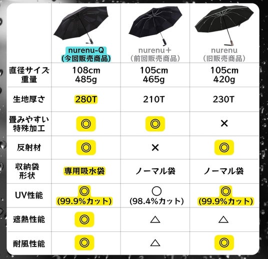 よく市販されている折りたたみ傘などに比べてスペックの高いnurenuシリーズの中でも
