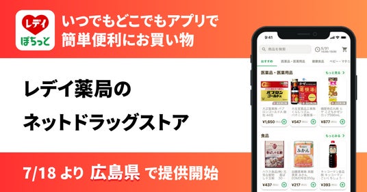 株式会社レデイ薬局(愛媛県松山市、代表取締役:白石 明生)は、ネットドラッグストア「レデイのぽちっとオーダー」を2024年7月18日(木)より広島県の11店舗にサービスエリアを拡大します。