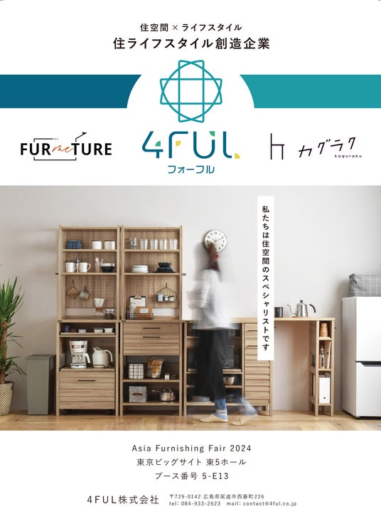 4FUL株式会社(本社:広島県尾道市、代表取締役:佐藤友彦)は、2024年11月20日~22日に東京ビッグサイトで開催される「アジア・ファニシング・フェア 2024(