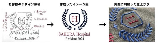 お客様のデザイン原稿→作成したイメージ画→実際に刺繡した仕上がり