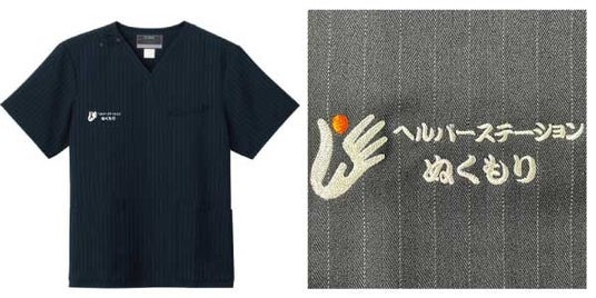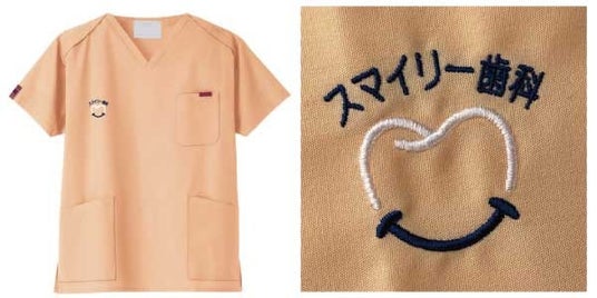 刺繍加工の仕上がりイメージ施設名や個人名、お好みのイラストを入れたオリジナルのメディカルウェアを作製できます。
