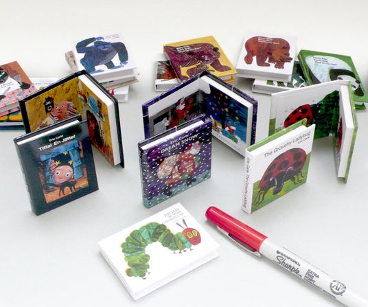 エリック・カールの本物の絵本を忠実に小さくした、表紙が開く絵本型マグネット。