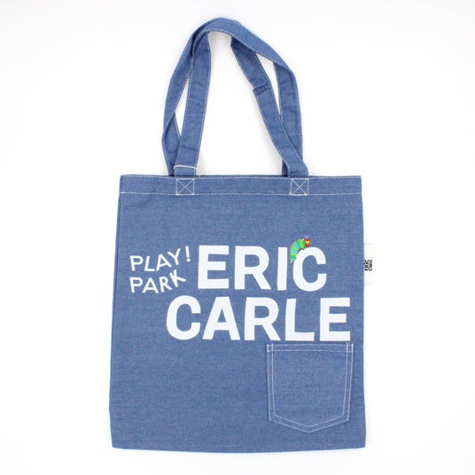 HUNGRY MARKETに隣接する「PLAY! PARK ERIC CARLE」のロゴ入り、あおむしは刺繍で表現。ここでしか買えないトートバッグです。ジーンズポケットは鍵などの小物が入れられます。