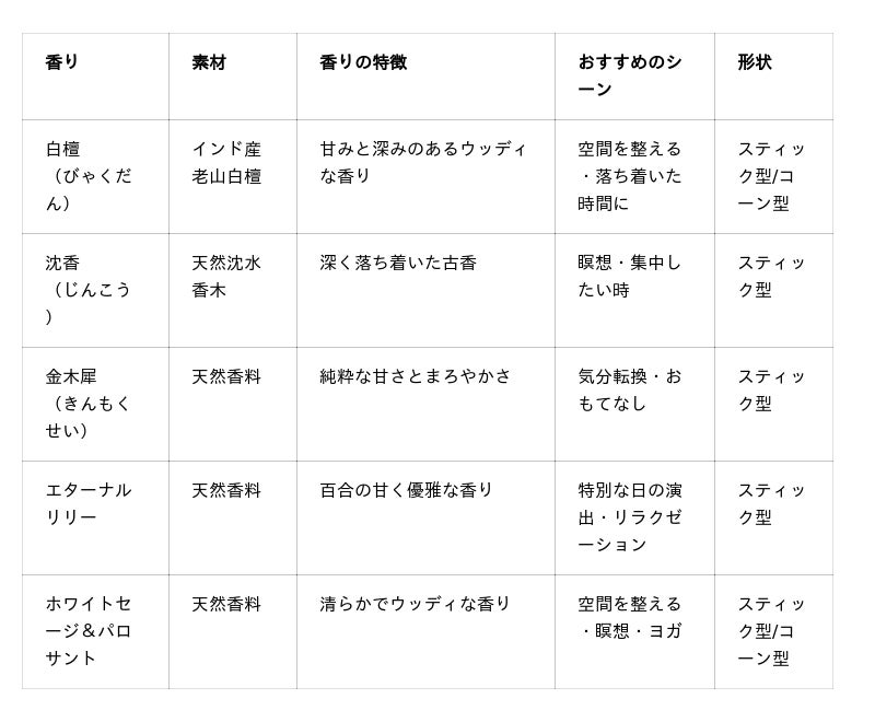 伝統の香りは、気分の切り替えや空間づくりにぴったり。