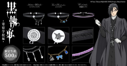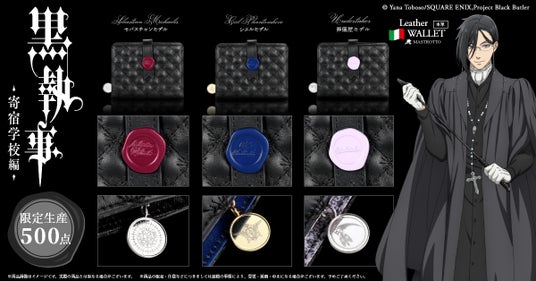 原作は枢やな先生が描く『黒執事』。全世界シリーズ累計3,600万部を超え、その美しく緻密に描かれた世界観と多彩なキャラクターで世界中のファンを魅了し続ける。アニメ「黒執事 -寄宿学校編-」よりセバスチャン、シエル、葬儀屋をイメージしたレザーチョーカー、腕時計、二つ折り財布が登場です。
