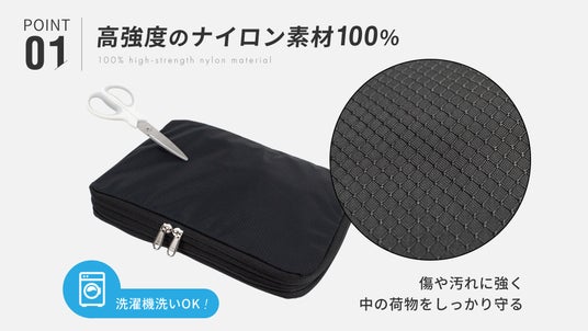 ・高強度ナイロン100%素材で、軽量ながらしっかり丈夫。
