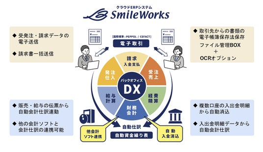 クラウドERPシステム「SmileWorks」は、自動化と電子化でバックオフィスの効率化を支援します。