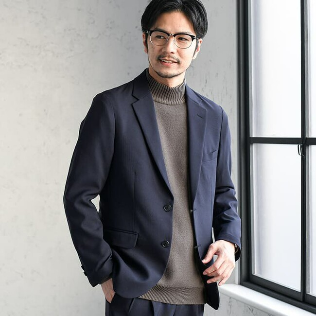 大人のテーラードジャケットパンツと同素材で作り上げたテーラードジャケットを組み合わせれば、セットアップとしてオシャレな「Iライン」シルエットを自然につくることができます。洗濯機での丸洗いも可能で、洗濯後もシワになりにくい仕様は嬉しく、ストレッチ性もあるため普段着としてはもちろん、ビジネスシーンでも活躍するアイテムとなっています。