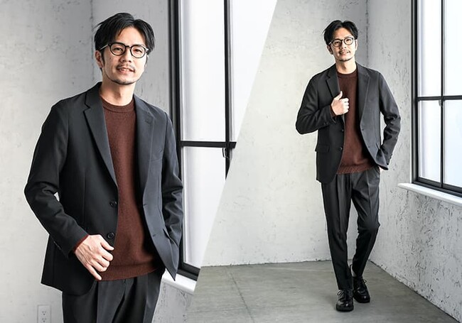 30代~40代男性をターゲットとして開発された本シリーズ。年相応のファッションに困ったり、体型の変化が気になったりする年代の方にも、気軽に簡単にオシャレを楽しんでいただくことができるよう、生地や縫製など見た目にもこだわりをもたせた品に仕上がりました。また、メンズスーツ専門メーカーと企画・生産を行ったことで、普段着として使えるセットアップながら、ビジネスカジュアルとしても利用できる仕立てとなっています。