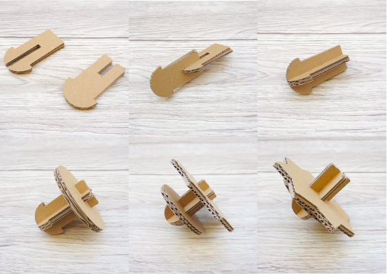 トミタパックス株式会社組み方・デコレーション次第でデザインは無限大!パズルのように組むだけで完成するダンボールのコマ!