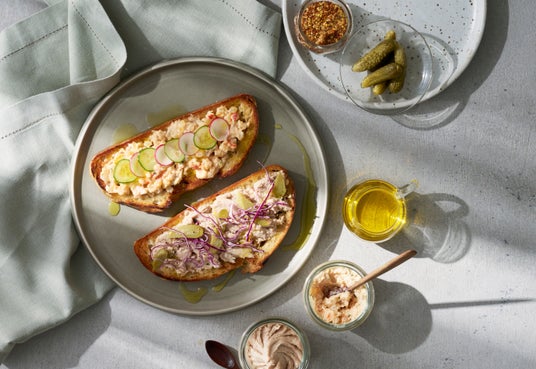 軽くトーストしたバゲットに。ピクルスや香味野菜を添えるのもおすすめ