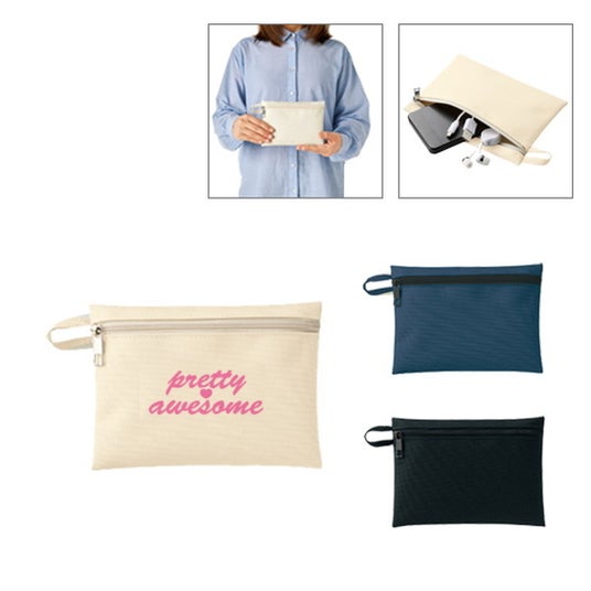 小物をまとめるのに最適なサイズとなっており、バッグの中の整理にも役立ちます。ギフト包装にもおすすめで、もらった後も使用しやすく、名入れをすればPR効果も抜群です。サイズ展開も多く、用途によってお選びいただけます。