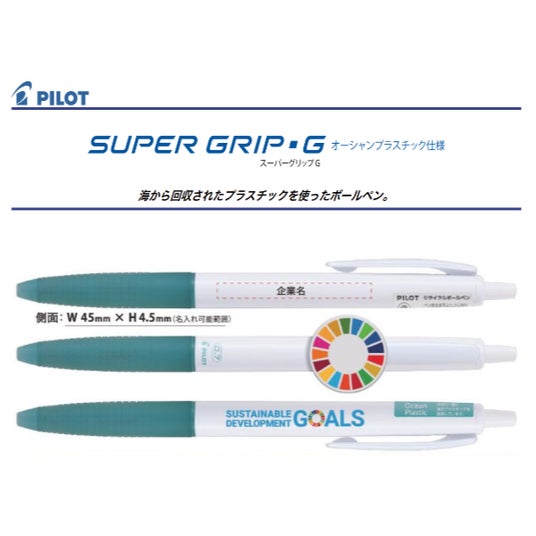 ALJAROおすすめTOP31位 海洋プラスチック「油性ボールペン」パイロット スーパーグリップG 海から回収されたプラスチックを使ったボールペンしっかり握れるグリッドグリップの定番商品「スーパーグリップGノック式ボールペン」のボディの一部に海洋プラスチックごみからリサイクルした再生樹脂を使用しています。