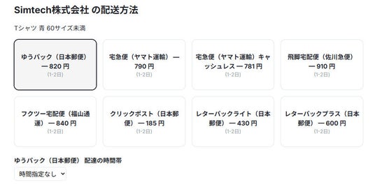 これにより、商品ごとに利用可能な配送方法を管理画面で指定することで、注文手続き画面で当該商品の条件に合致する配送方法のみが候補として表示されるようになり、ユーザーはその中から選択ができます。