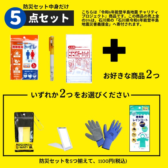 「防災セット中身だけ」 5点セット 1100円(税込)