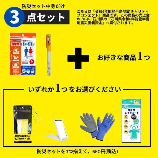 「防災セット中身だけ」 3点セット 660円(税込)