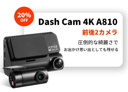 Dash Cam 4K A810が20%OFF