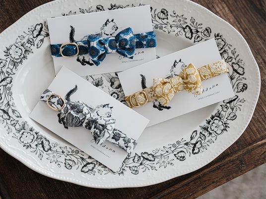 主に首輪やベッド、フードマット、猫用おもちゃなど、ファブリックを中心としたアイテムを展開致します。