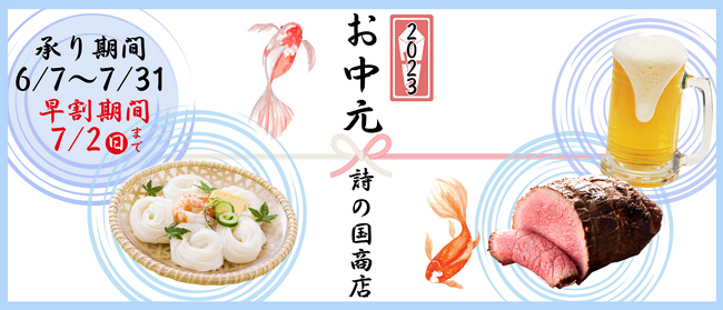 食品や工芸品を中心に、厳選された秋田県産品の販路開拓を行う地域商社 詩の国秋田株式会社(代表取締役 伊藤 晋宏)が運営するECサイト「詩の国商店」は、6月7日からお中元特集を開始いたしました。秋田牛や稲庭そうめん、涼菓、ご当地ビール等、秋田の夏ならではの新商品やお中元期間のみ販売の限定商品も多数取り揃えております。早期お申込で最大10%OFFや一部商品については送料無料・送料値引もございます。夏のごあいさつには”秋田のとてもおいしいもの”を贈りませんか?