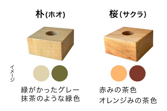 朴は少し緑色を帯びた独特の色合いが特徴で、木の部位によって木目や色味が大きく異なるため、木の豊かな表情や個性を楽しめます。一方、桜は赤みやオレンジみの強い茶褐色が特徴で、優しくて柔らかな温かみのある色味はどんな空間にもマッチします。