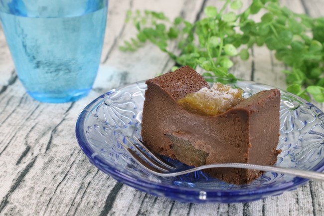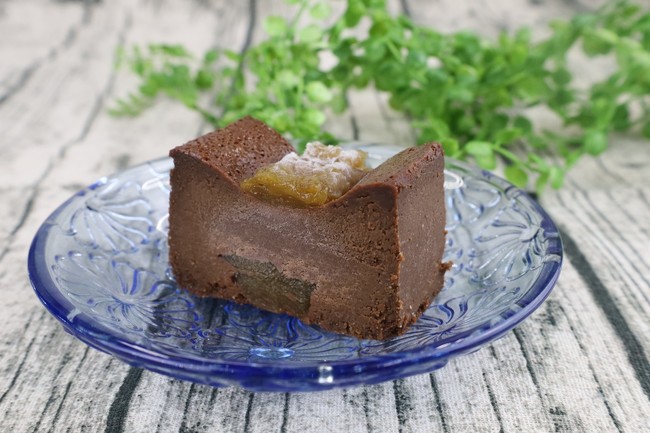 解凍させてテリーヌショコラとしてお召し上がり頂く時のしっとり感とは違い、解凍直後はまるでアイスを食べているかのようにお召し上がりいただけます。味もチョコレートの濃厚さだけではなく上に乗せている梅と中に入っている梅の爽やかな酸味でさっぱりと食べて頂くことができます。