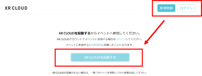 2.再度、上記URLをクリックして「新規登録またはログイン」をして、「XR CLOUDを起動する」