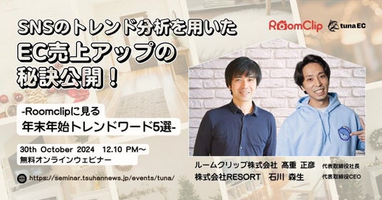SNSのトレンド分析を用いたEC売上アップの秘訣公開!-Roomclipに見る年末年始トレンドワード5選-400万人が使う住まいと暮らしのSNS「RoomClip」のユーザーデータをもとに、最新の住生活領域のトレンドを踏まえた年末年始の消費者インサイトをご紹介。D2Cビジネス成功の要諦となるSNSを活用した売上の作り方をお伝えします。