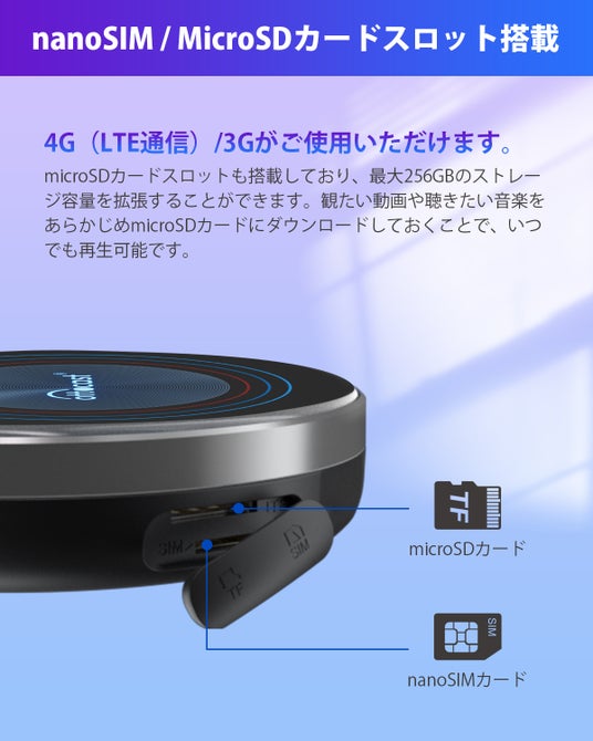 拡張可能なメモリ:マイクロSDカード(最大256GB)