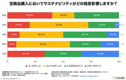高年代になるほど宝飾品の購入においてサステナビリティ(持続可能性)を意識している、という回答が多く寄せられました。