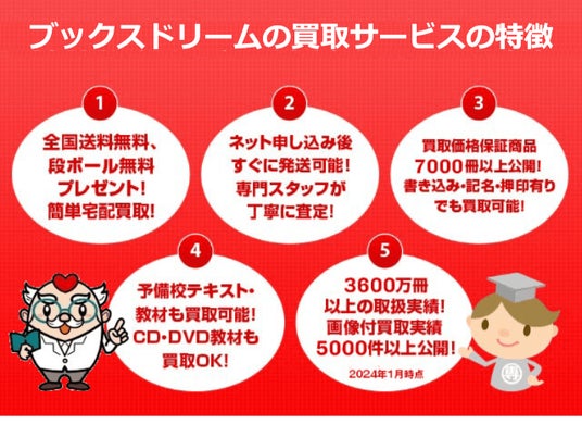 株式会社ブックスドリーム(本社:大阪府大阪市、代表取締役:井上聖也)は、参考書・専門書・医学書・大学教科書・予備校テキスト・教材を専門に全国から宅配買取を行い、ネット通販で販売しており、2024年で創業15年目を迎えました。