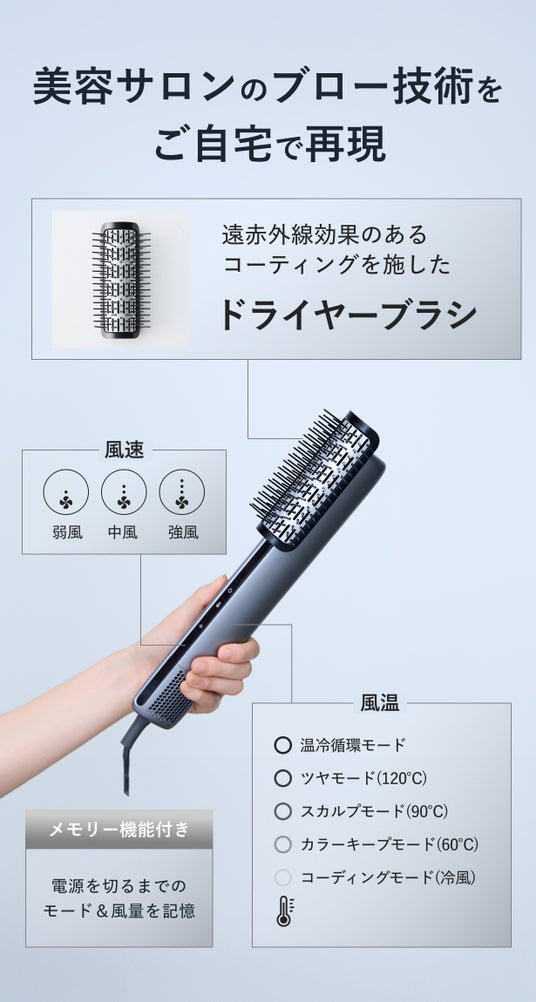 昨年12月には楽天市場の2億点以上からCM商品に選出され、今年は大手検証メディア『家電批評』にて高級ドライヤーサラサラ部門のBestbuyを受賞した「エアーブロースティック」から、待望の「アタッチメント専用ブラシ」が登場。