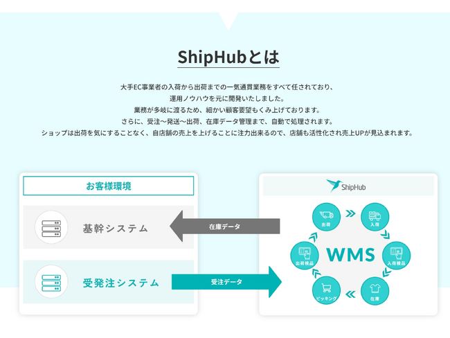 倉庫管理システム「ShipHub」の専用Webサイトは、以下のURLからご覧いただけます。