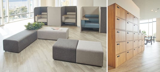 売り場内の休憩スペースや、従業員休憩室、バックヤードなどを想定した、什器・家具を紹介。当社オリジナル商品に加えて、当社子会社であるD2C家具ブランド「ENEN(エネン)」の意匠性の高い商品も交えた豊富なラインナップを展示します。