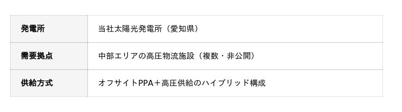 この取り組みは、物流施設特有の日中ピーク負荷を追加性のある再エネ発電所(太陽光)による再生可能エネルギーで賄いながら、夜間や天候変動時には小売電力で補完するハイブリッド構成により、同社の中部地区における脱炭素化と電力コストの安定化を同時に支援します。