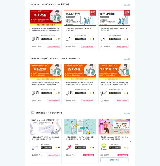 いつまでにこういう制作物が欲しい、LPをすぐ作成したい、楽天RPP運用をプロに委託したい、など自社の体制に合うフリーランスワーカー、支援会社を素早く見つける事ができます。