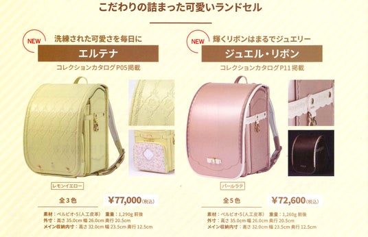 今年度は、オーダーメイドランドセルの新色・新デザインパーツの追加により、組み合わせが530億通り以上に拡大。さらに、コレクション(既製品)ラインでは「エルテナ」「ジュエル・リボン」「VONDS R」「アクティブNEO」など注目の新モデルが多数登場します。加えて、サンリオキャラクターズやアディダスランドセルの新作「ヴェント X」も新たにラインナップ。お子さまの個性と好みに合わせた、世界にたった1つのランドセル選びをお楽しみいただけます。
