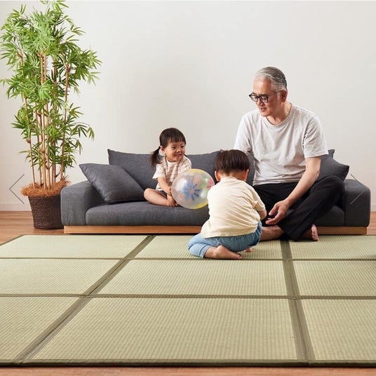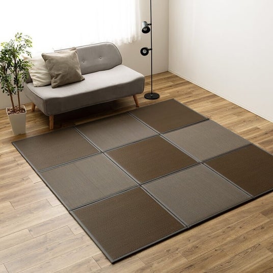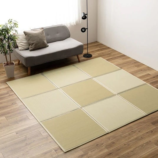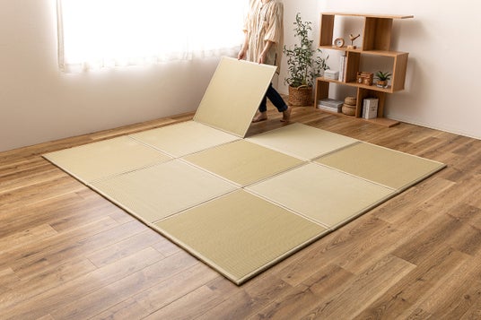 広げるだけで約4.5畳の畳スペースになる置き畳。9枚が連結されているためズレを大幅に軽減し、隙間にゴミが溜まりにくくなっています。キッズスペースやラグとして常に広げておくも良し、来客時の際だけ出すもよし。コンパクトに折り畳めるので収納も場所を取りません。