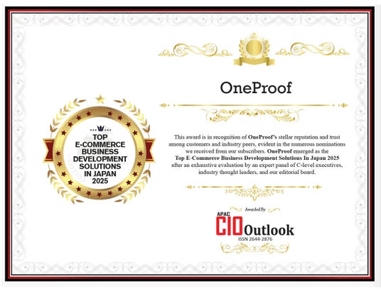 2025年4月、株式会社ワンプルーフ(本社:東京都新宿区、代表取締役:平山和泉)は、アメリカのIT専門誌「APAC CIO Outlook」にて「Top E-Commerce Business Development Solutions in Japan 2025」を受賞いたしました。