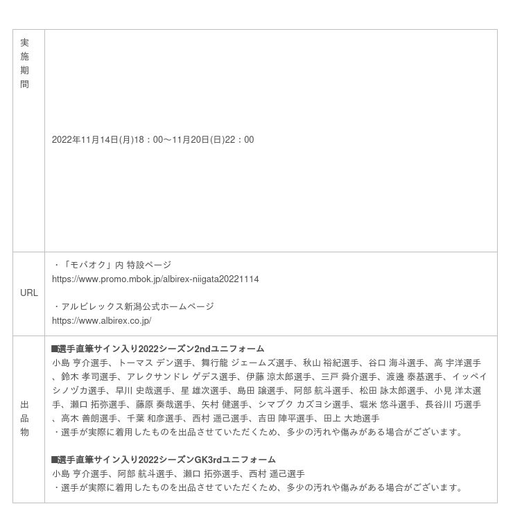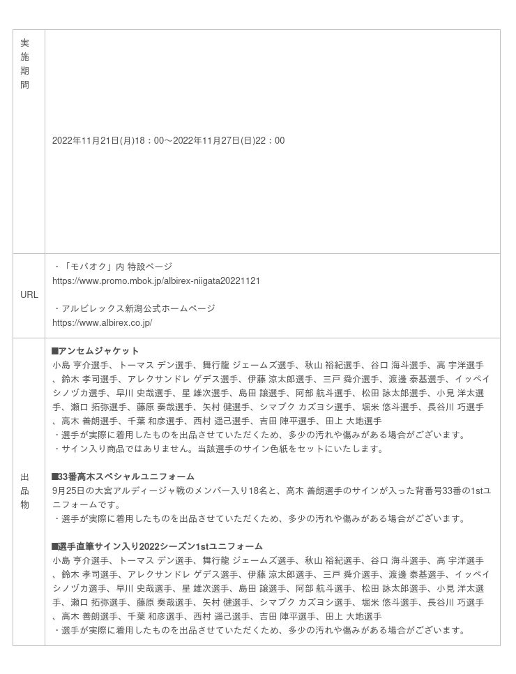「アルビレックス新潟2022シーズンオークション」第一弾 概要