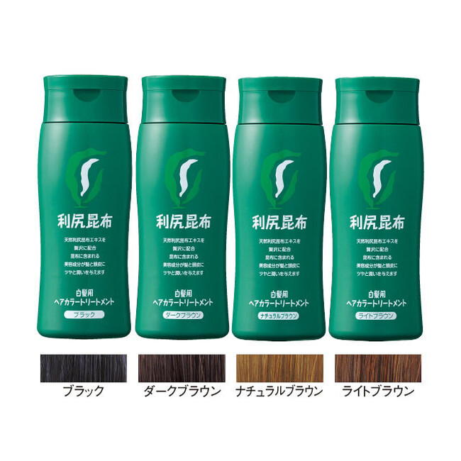 【白髪用】利尻ヘアカラートリートメントは、ブラック、ダークブラウン、ナチュラルブラン、ライトブラウンの4色を展開しており、浴室で簡単に使用することができ、髪にやさしい使い心地でツンとした嫌な臭いがないことから、発売以来ご好評をいただいております。2021年には髪のつやとふんわりとした柔らかな手触りを体感できる、チューブタイプの【白髪用】利尻ヘアカラートリートメント つやプラス(ブラック、ダークブラウン、ナチュラルブラウン 3色展開)が仲間入りしました。