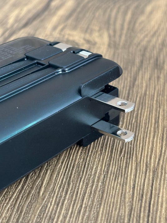 本体にACプラグを内蔵しており、直接コンセントに差し込むだけで充電可能。アダプター不要で、モバイルバッテリー本体の充電と、デバイスへの給電が同時に行えます。