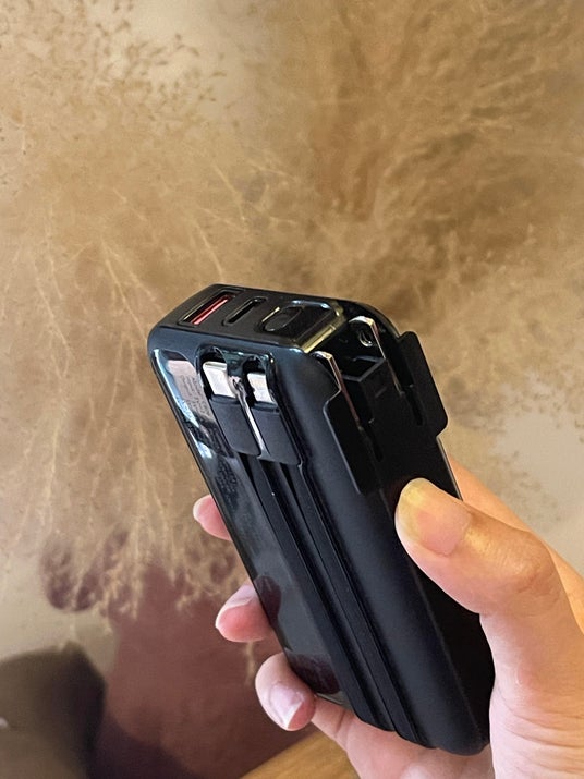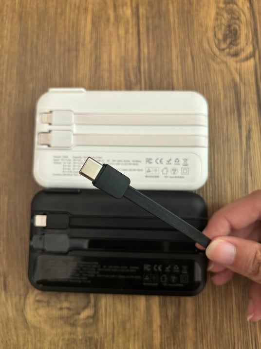 Type-CおよびLightningケーブルを本体に内蔵し、さらにType-C/USB-Aポートも搭載。合計4台のデバイスを同時に充電でき、外出先でも安心です。
