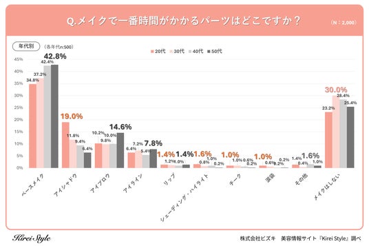 「今のキレイも、10年後の輝きも」をコンセプトに美容や健康にまつわる情報を発信する「Kirei Style(キレイスタイル)」の運用を行う株式会社ビズキは、全国の女性2,000人を対象に美容に関するアンケートを実施し、年代別等の特徴についてまとめました。