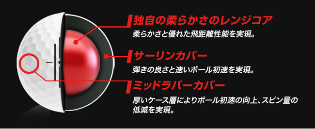 三層の構造からなる3ピース構造で、従来のボールよりさらなる性能を実現。