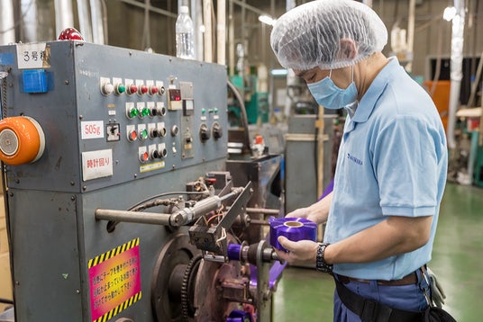 松浦産業では、テープの老舗メーカーとして、原料の配合や幅を変えることで様々なテープを製造しています。例えば、工業用梱包資材である『タイヤ梱包用フィルム』は、輸送の衝撃から守るよう強度を高め、紫外線から守るように進化した、いわば大きなレコード巻です。