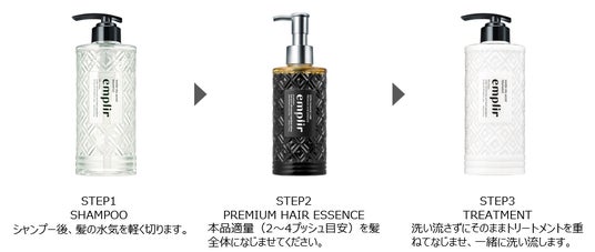 エッセンスはトリートメントの前!ライン使いで効果UP! Amazon新着商品ランキング1位※1を獲得した「プレミアムヘアエッセンス」は、シャンプーとトリートメントの間に使用する「導入美容液」です。