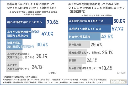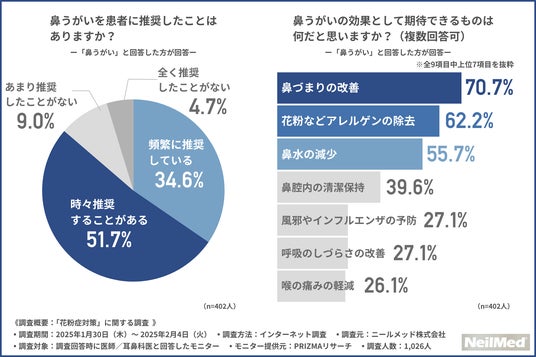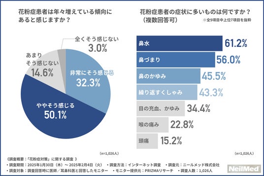 ニールメッド株式会社(本社:東京都千代田区、代表取締役社長:唐木 祐介)は、医師/耳鼻科医を対象に、「花粉症対策」に関する調査を実施しました。毎年、多くの人々が花粉症に悩まされる中、そのつらい症状は日常生活に大きな影響を及ぼします。