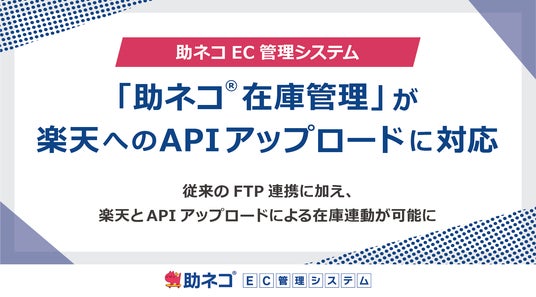 株式会社アクアリーフ(本社:神奈川県平塚市、代表取締役 長谷川 智史)が提供するネットショップ向け業務管理システム「助ネコ(R)EC管理システム(以下、助ネコ)」は、2024年4月18日より、同シリーズの「助ネコ在庫管理」において「楽天市場(以下、楽天)」への在庫API(InventoryAPI)アップロードに対応します。